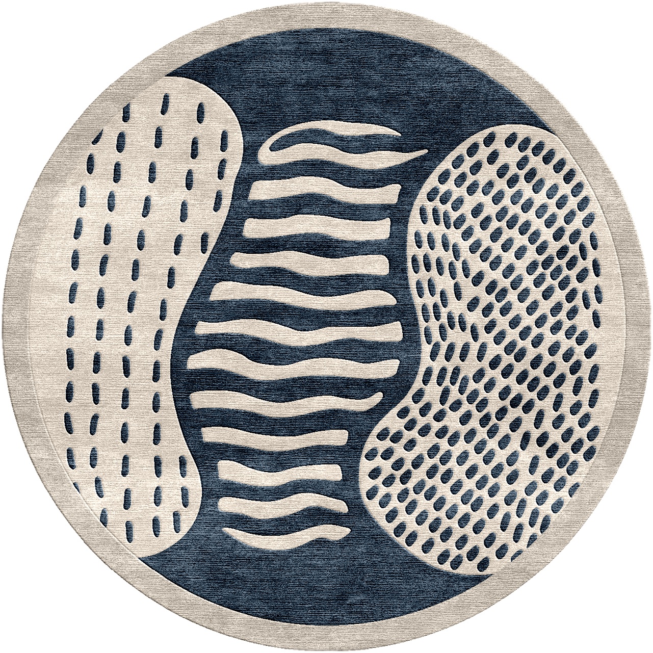 צורות גיאומטריות נראות כאילו הן נמסות זו בזו, ויוצרות קומפוזיציה ייחודית ודינמית. שטיח זה מגשר על הפער בין עיצוב מובנה לזרימה אורגנית.