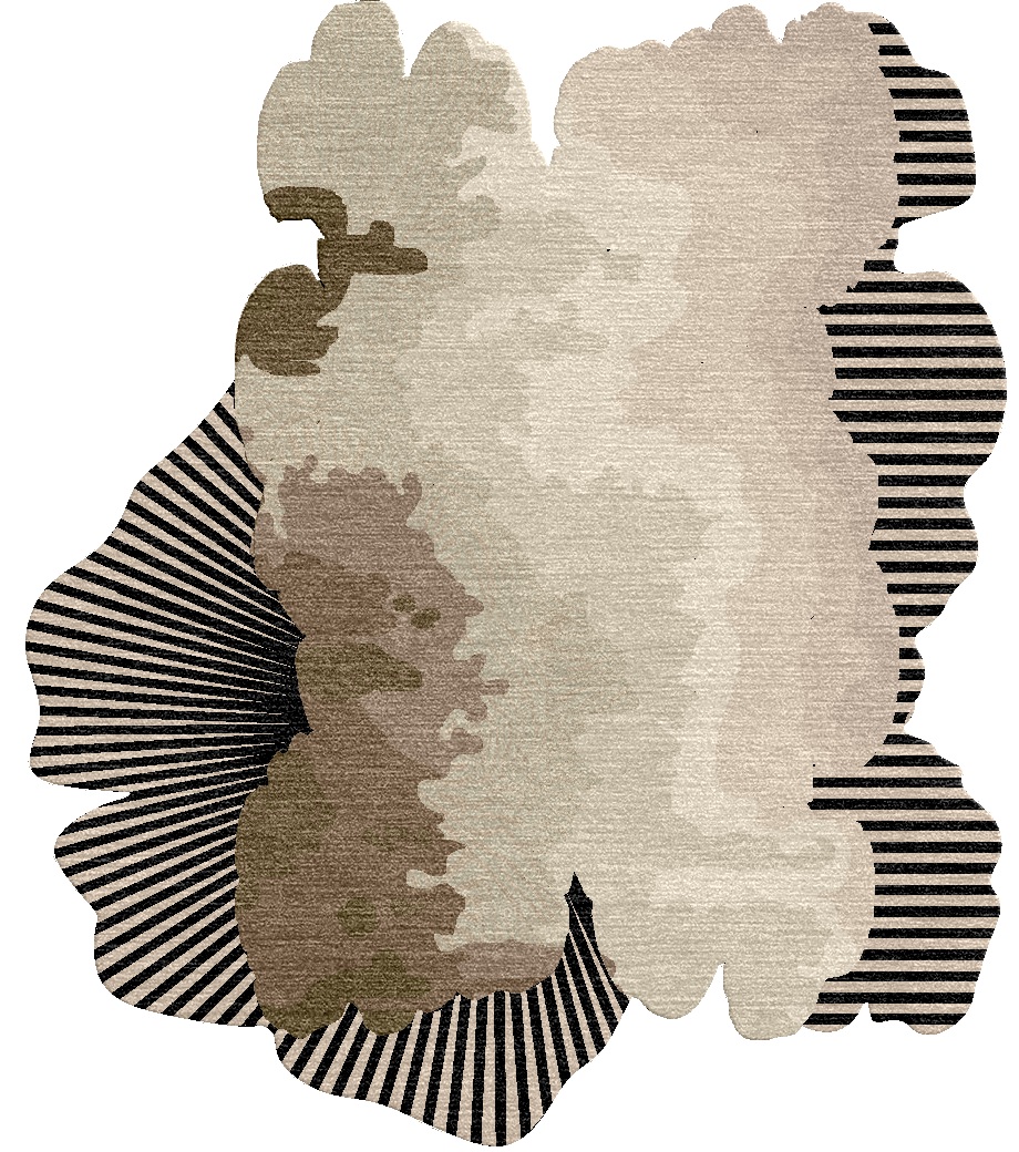 איזון מרשים בין רכות למבנה, עם שכבות של צורות אורגניות מעל בסיס ליניארי מודגש. פסים עמוקים בגוון אובסידיאן יוצרים עומק וניגודיות מול גוונים אדמתיים רכים. צורה חופשית מעניקה אופי אמנותי ונוכחות חזקה.
